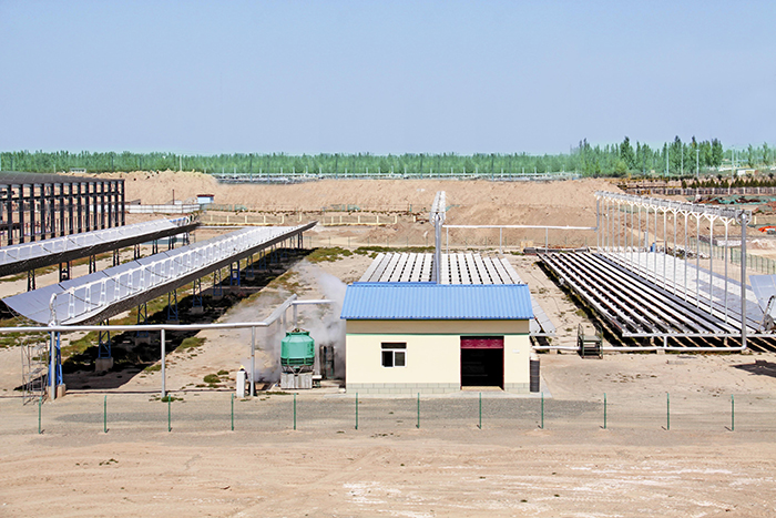The entire solar collector system are designed, produced and implemented by Lanzhou Dacheng. The solar collector system has two groups of the 150 m Parabolic Trough collectors and two groups of the 96 m linear Fresnel collectors.